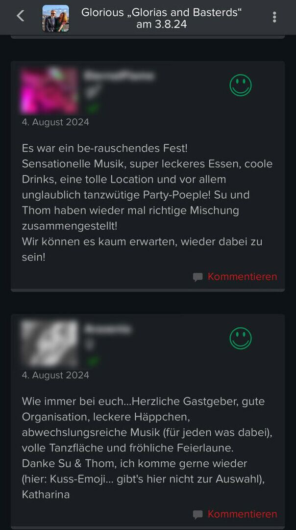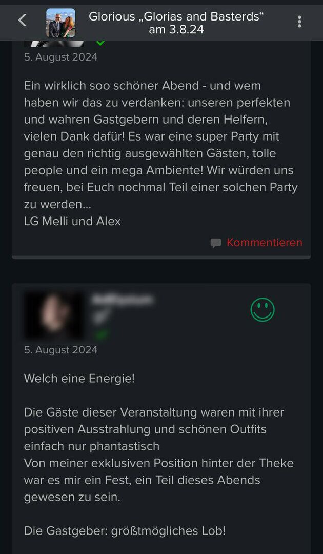 Gästeresonanzen unten (zur Vollansicht bitte klicken) Gästeresonanzen auch in den eventinfos selbst