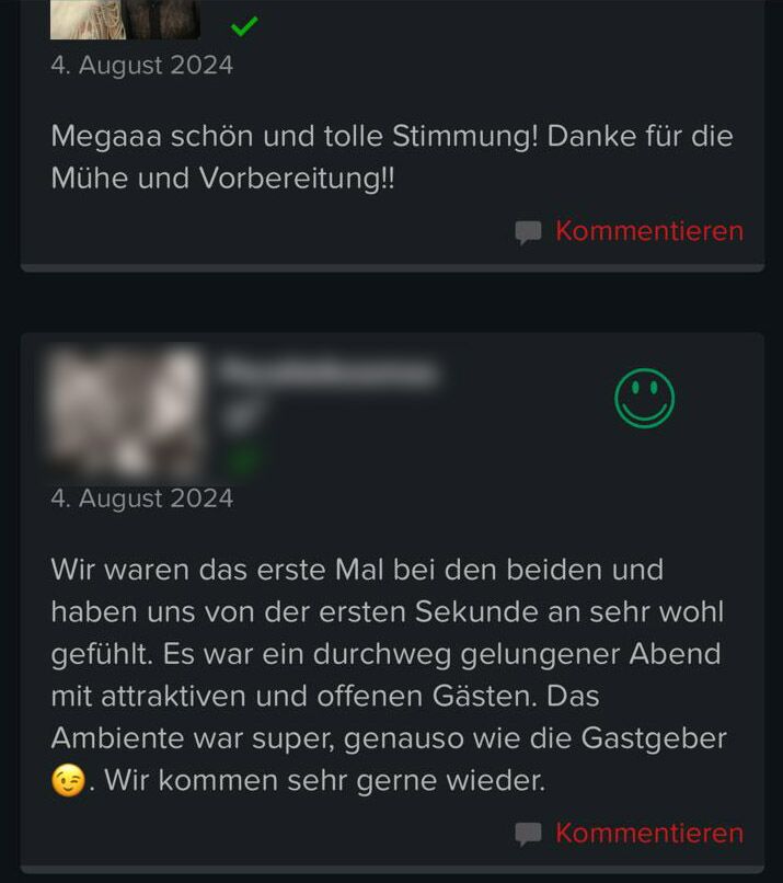 wir haben den Abend vollends genossen und möchten uns nochmal ganz herzlich für Eure tolle Gastfreundschaft bedanken. Ihr seid reizende Gastgeber und habt Euch ein wunderschönes refugio aufgebaut. Eure Zielsetzung "networking, flirten, tanzen und etwas Erotik" ist voll aufgegangen.
